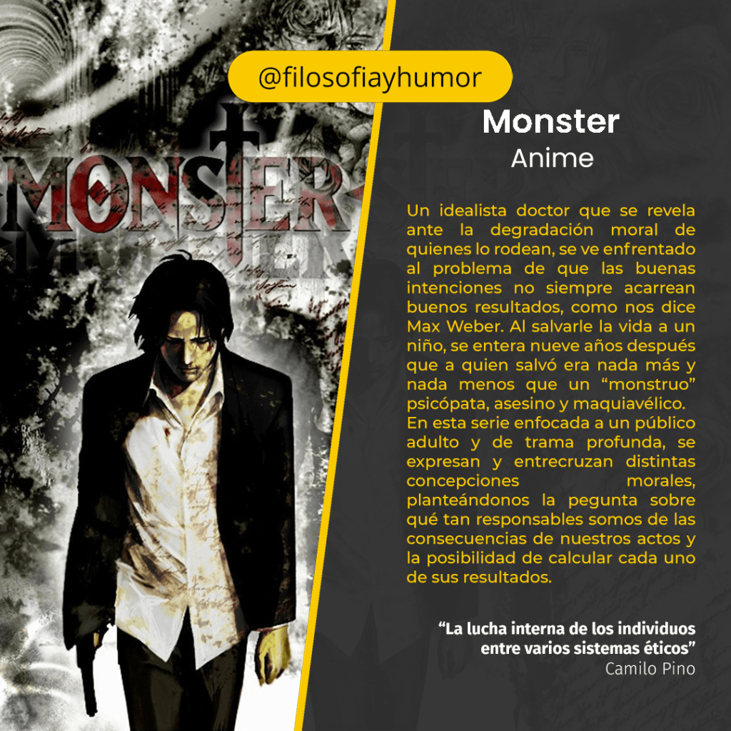 Un idealista doctor que se revela ante la degradación moral de quienes lo rodean, se ve enfrentado al problema de que las buenas intenciones no siempre acarrean buenos resultados, como nos dice Max Weber. Al salvarle la vida a un niño, se entera nueve años después que a quien salvó era nada más y nada menos que un “monstruo” psicópata, asesino y maquiavélico.