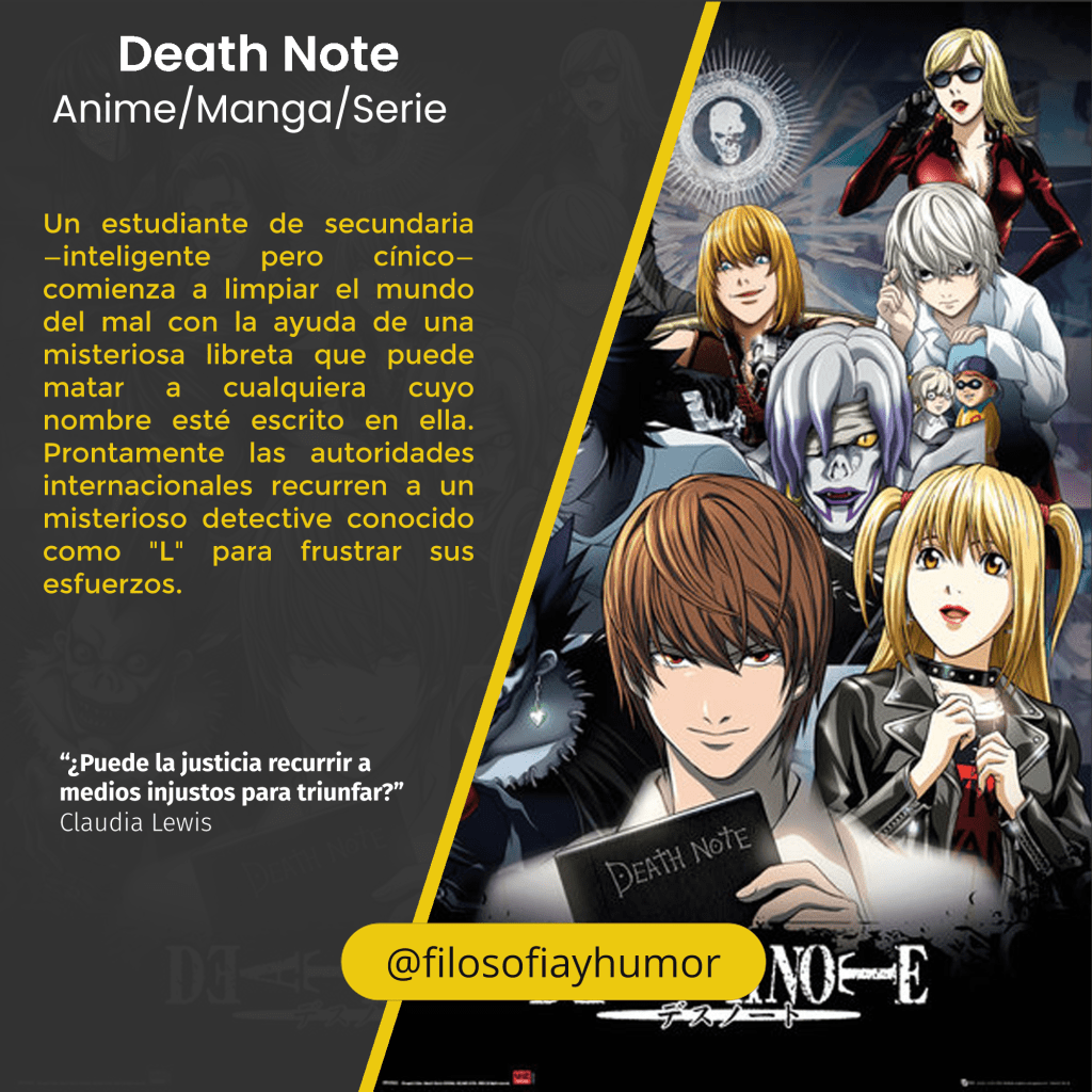 Un estudiante de secundaria —inteligente pero cínico— comienza a limpiar el mundo del mal con la ayuda de una misteriosa libreta que puede matar a cualquiera cuyo nombre esté escrito en ella. Prontamente las autoridades internacionales recurren a un misterioso detective conocido como “L” para frustrar sus esfuerzos.