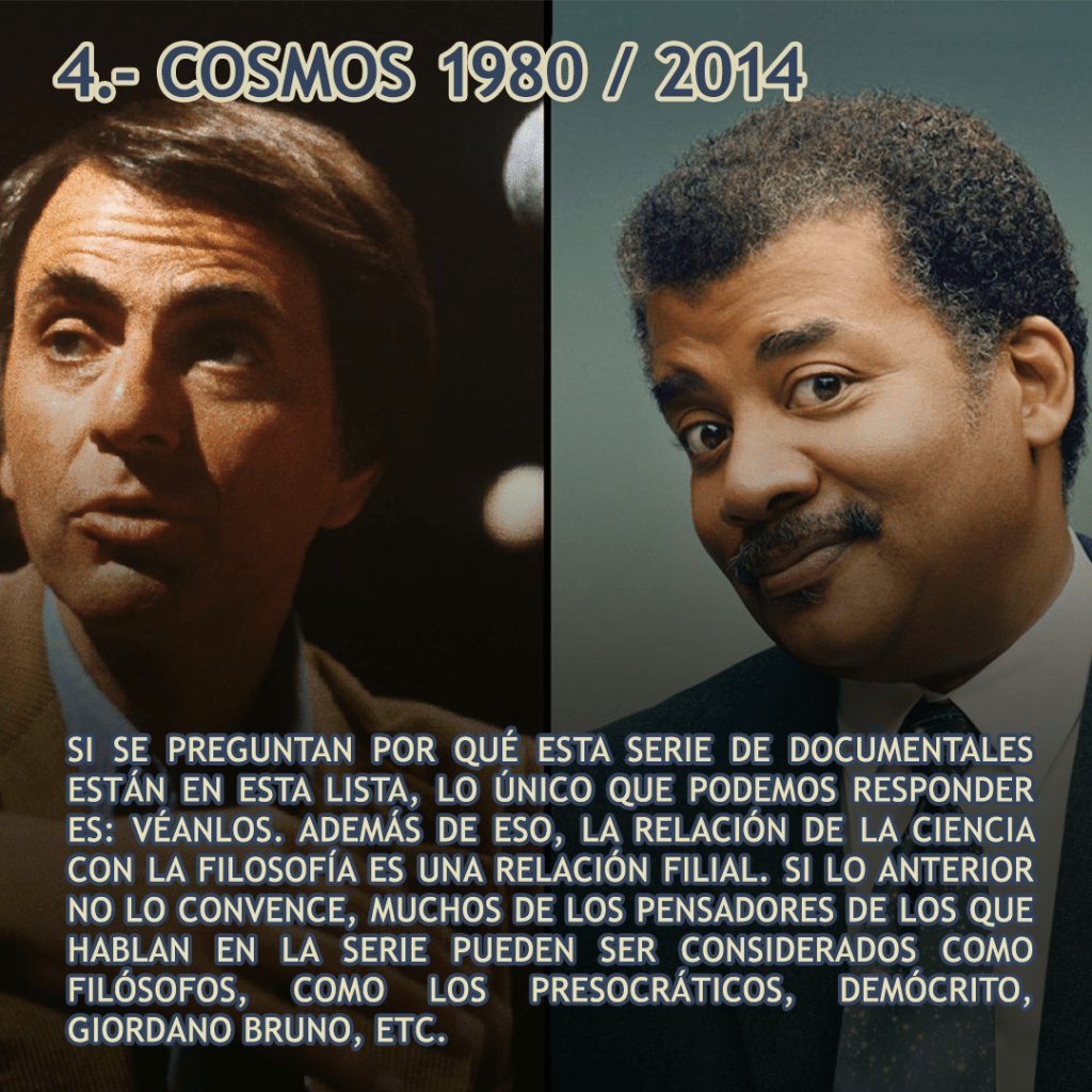 Si se preguntan por qué esta serie de documentales están en esta lista, lo único que podemos responder es: véanlos. Además de eso, la relación de la ciencia con la filosofía es una relación filial. Si lo anterior no lo convence, muchos de los pensadores de los que hablan en la serie pueden ser considerados como filósofos, como los presocráticos, Demócrito, Giordano Bruno, etc.